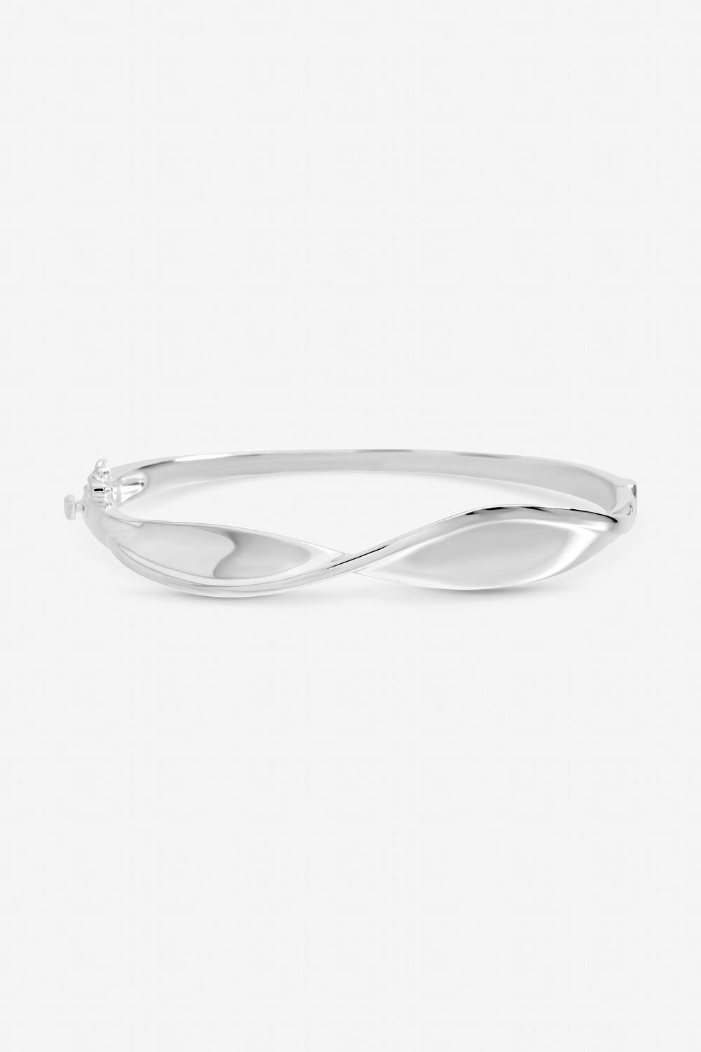 Modern silver bangle with a polished finish and a fluid, undulating wave design. Perfect for adding a touch of sophistication to any outfit.