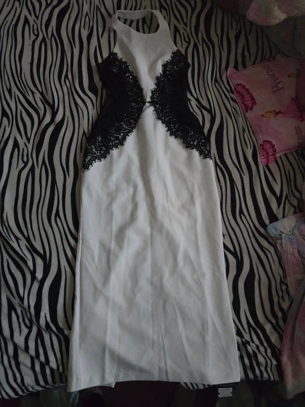The Innovare Denim White & Black Lace Split Midi Dress Size M is ideal for evening, party, date-night.