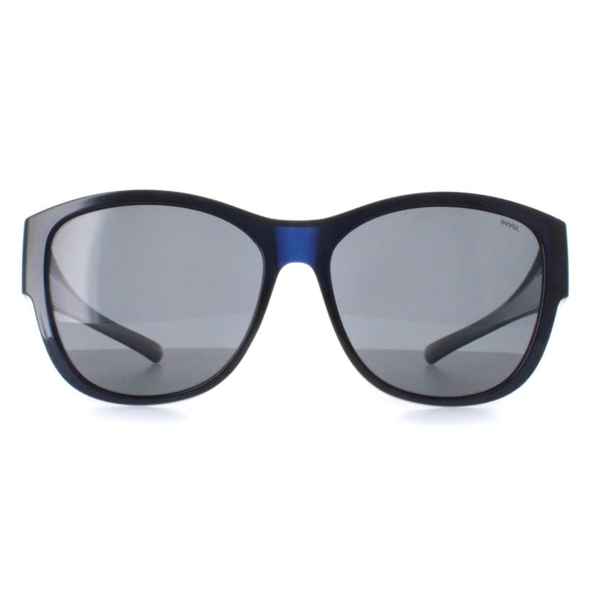 Experience the perfect blend of style and functionality with the INVU fit-over designer sunglasses. Featuring a round blue plastic frame with polarized lenses, these sunglasses are perfect for everyday wear.
