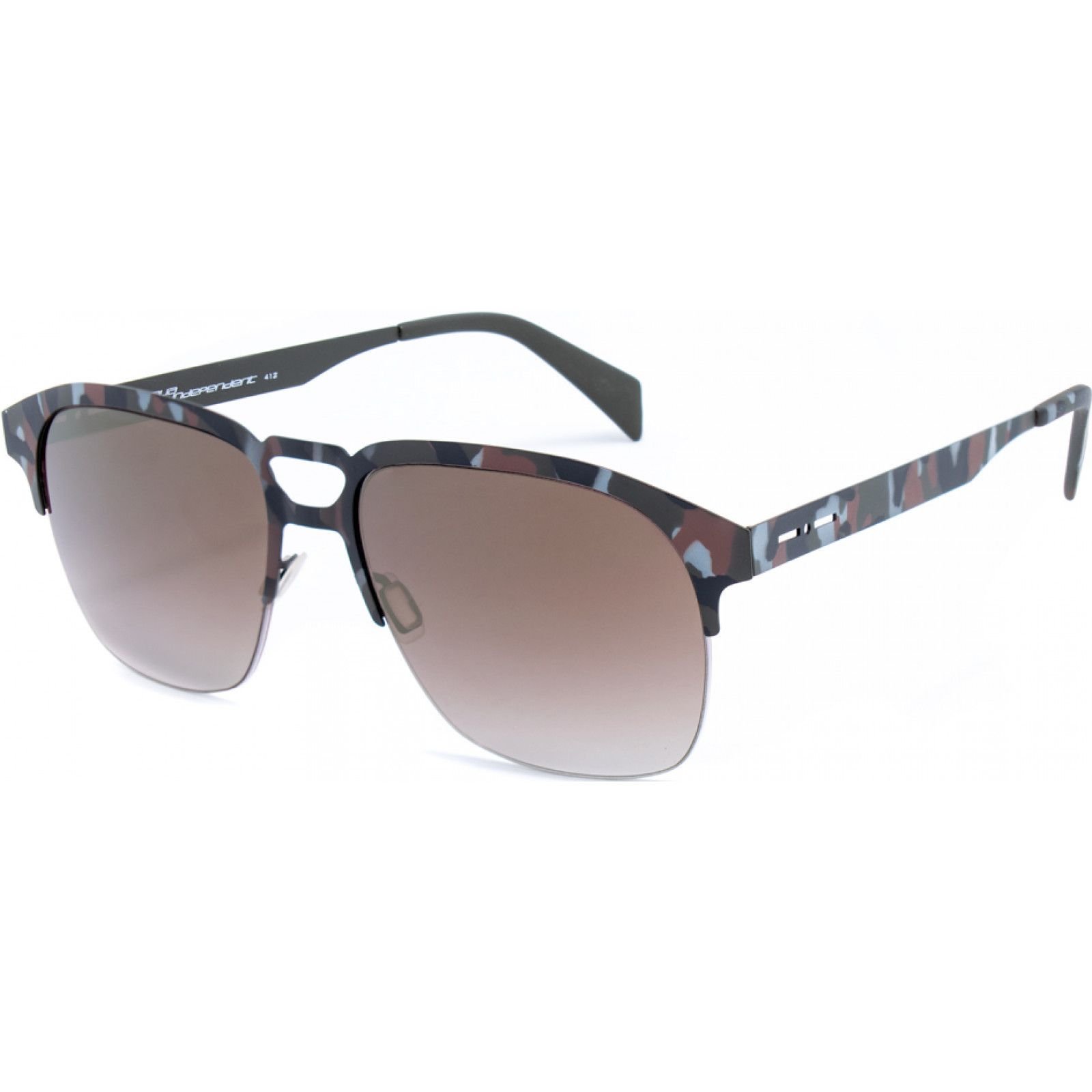 Stylish Italia Independent sunglasses in grey with a camouflage pattern. These aviator-style sunglasses feature brown lenses and a metal frame for a modern and edgy look.