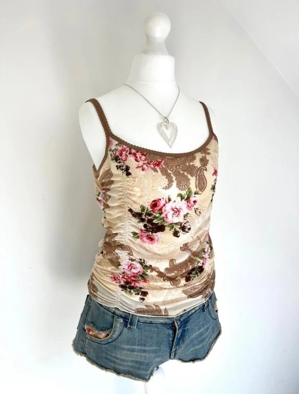 The Italian Vintage Cream Floral and Paisley Pattern Cami Top is available in sizes M.
