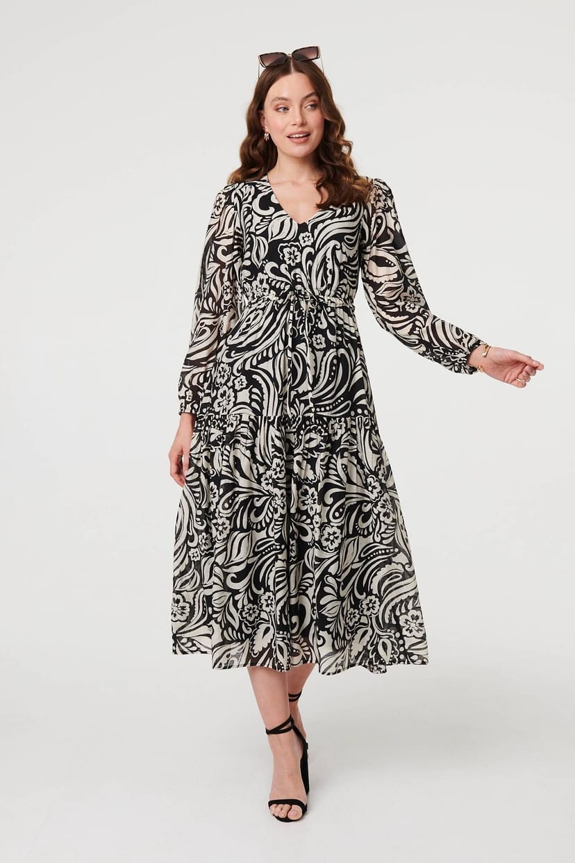 The Izabel London Black Printed Maxi Dress is ideal for formal, professional, evening.