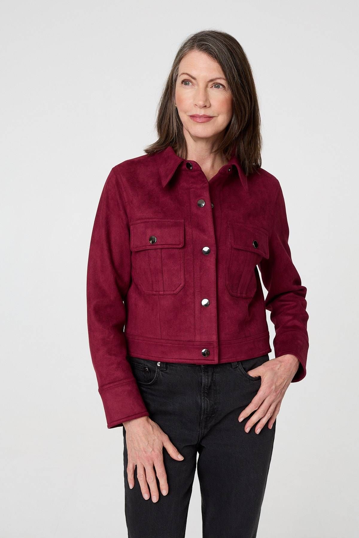 The Izabel London Burgundy Faux Suede Jacket is ideal for casual, formal, everyday.