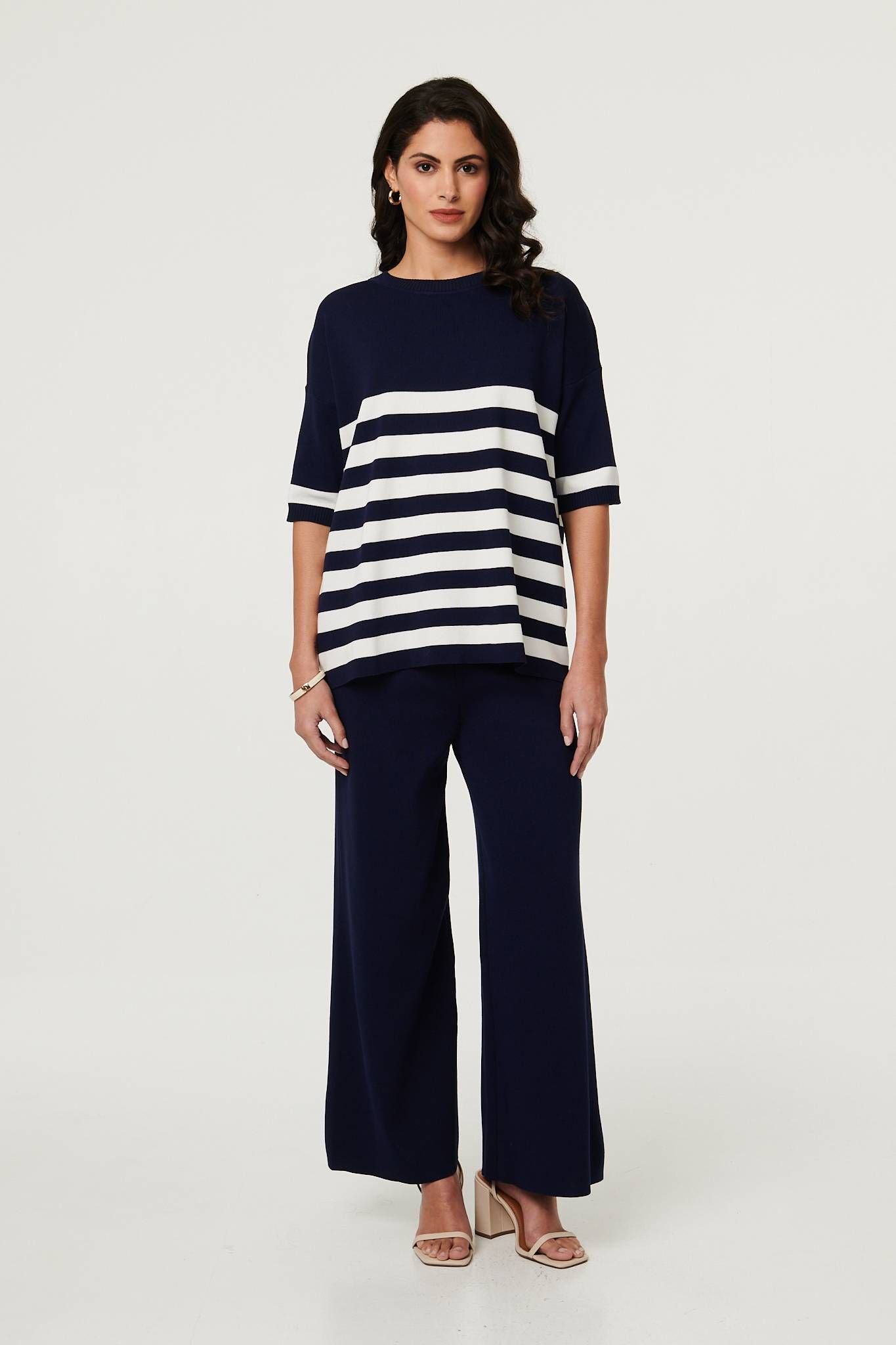 The Izabel London Navy Knit Texture Co-ord Set is ideal for casual, day out, brunch.