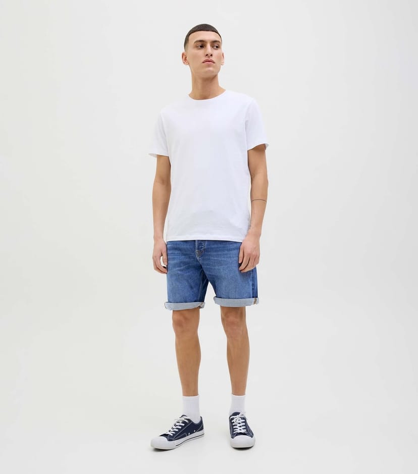Casual blue denim shorts by Jack & Jones. Made from durable denim, these shorts feature a relaxed fit and turned-up cuffs. Ideal for summer outings.