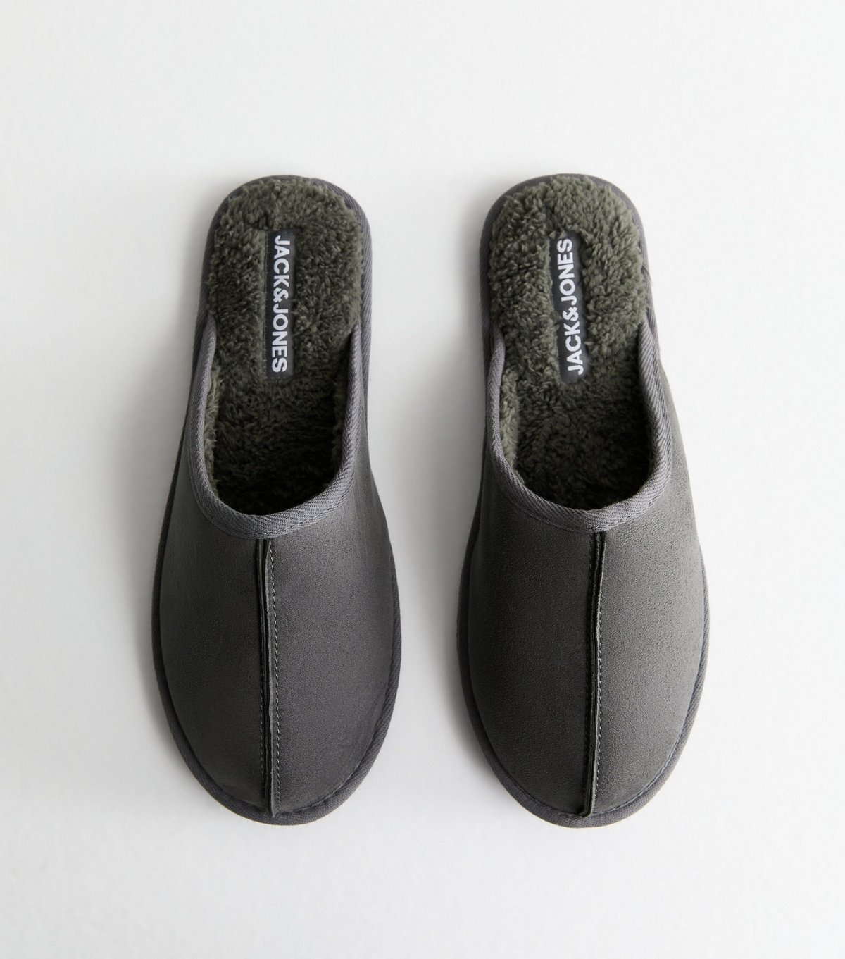 Comfortable dark grey faux suede slippers from Jack & Jones. Ideal for at-home lounging, these slip-on shoes feature a handy slip-on silhouette. Perfect for casual indoor wear.