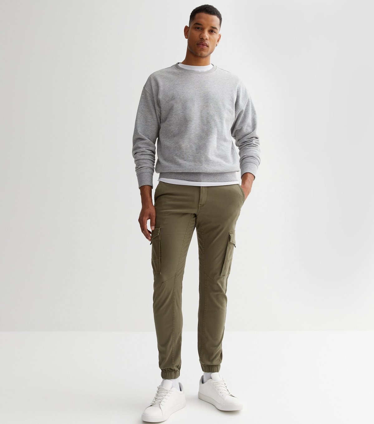 The Jack & Jones Khaki Slim Fit Cargo Trousers is available in sizes 28R, 30R, 32R, 34R, 36R.