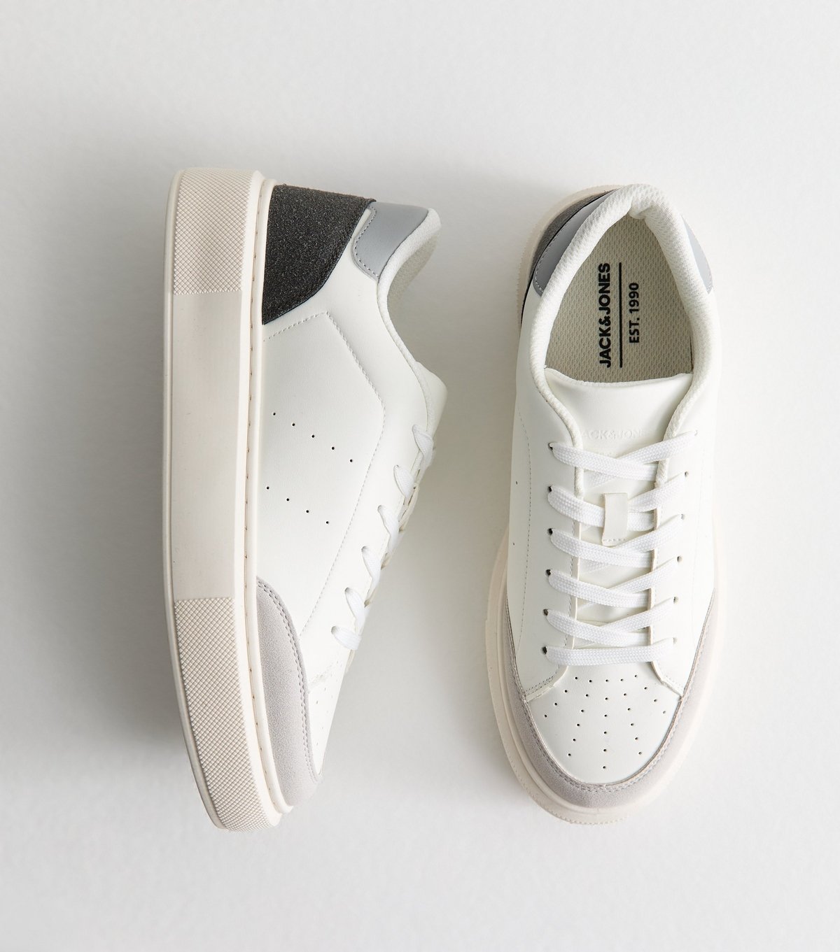 The Jack & Jones White Faux Leather Trainers is made from faux leather, faux suede.