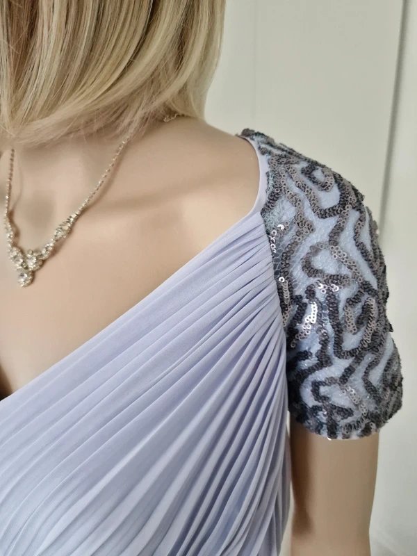 The Jacques Vert Lilac Chiffon Special Occasion Dress is ideal for wedding-guest, evening, formal.