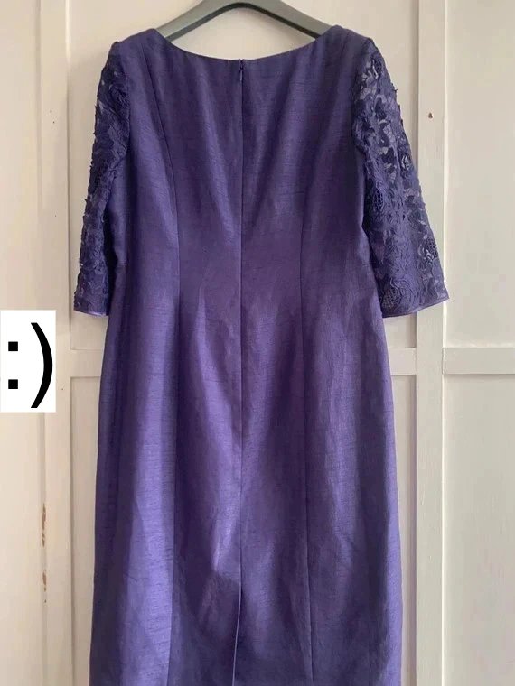 The Jacques Vert Purple Lace Sleeves Midi Dress is available in sizes L.