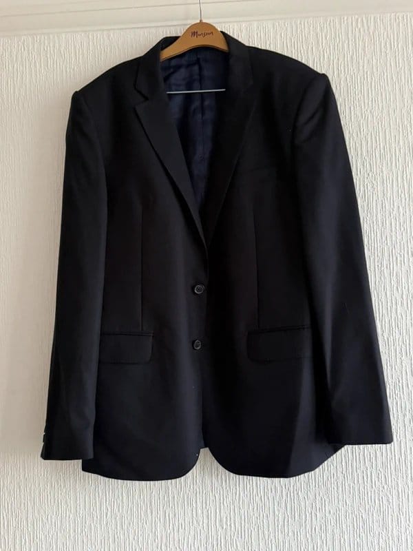 The Jaeger Navy Wool Single Breasted Men's Jacket is made from wool.