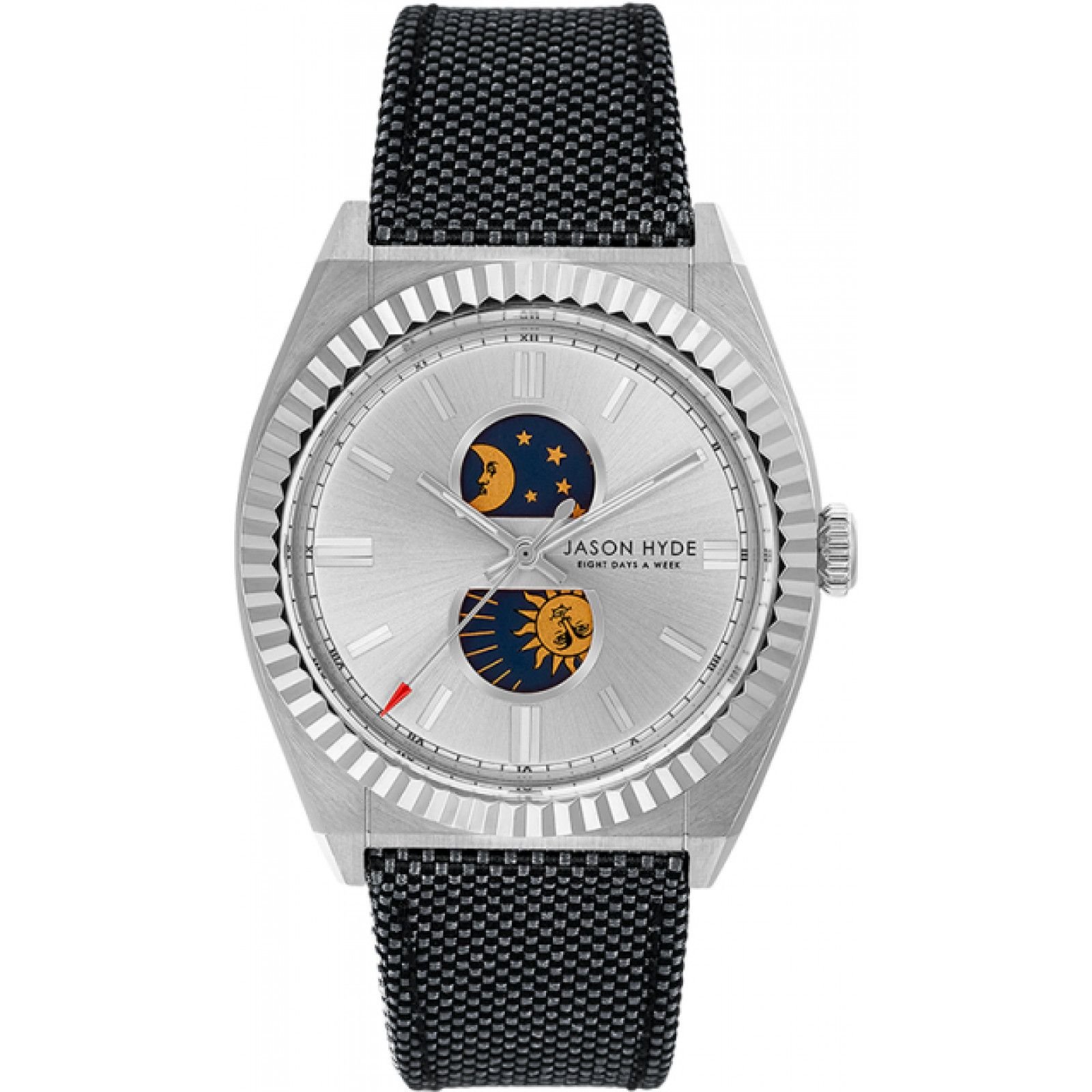 Sleek black mesh strap and silver-tone dial with unique day and night indicators. The Jason Hyde JH41000 is a stylish timepiece for everyday wear.