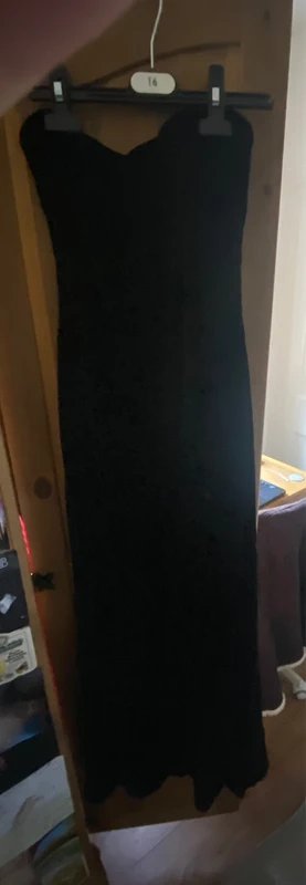 The Jasper Conran Black Velvet Strapless Corset Dress is available in sizes M.