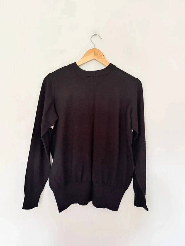This black knit jumper by Joanie features a Broadway Spellout Musical Slogan design. Made from a soft knit fabric, it offers a casual yet stylish look. Perfect for everyday wear or casual outings.
