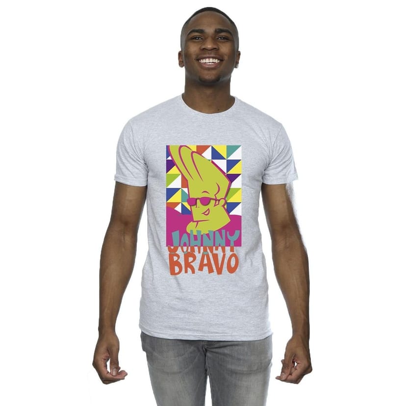 The Johnny Bravo Men's Multi Triangles Pop Art T-Shirt in Grey is ideal for casual, everyday.