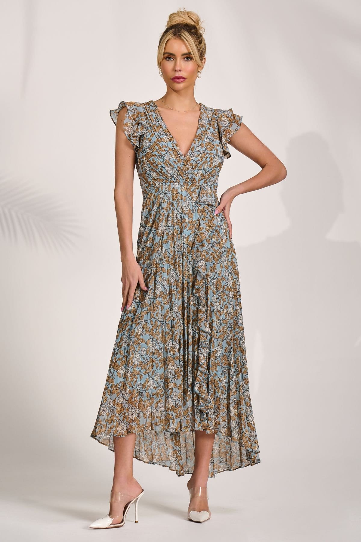 The Jolie Moi Blue Floral Chiffon Maxi Dress is ideal for evening, date-night, party.