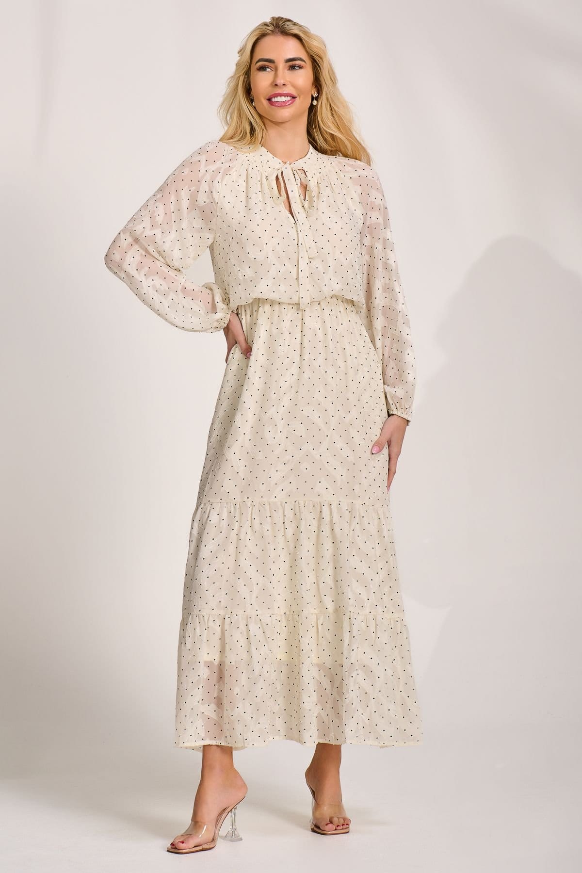 The Jolie Moi Cream Chiffon Long Sleeve Maxi Dress is ideal for evening, casual, daytime.