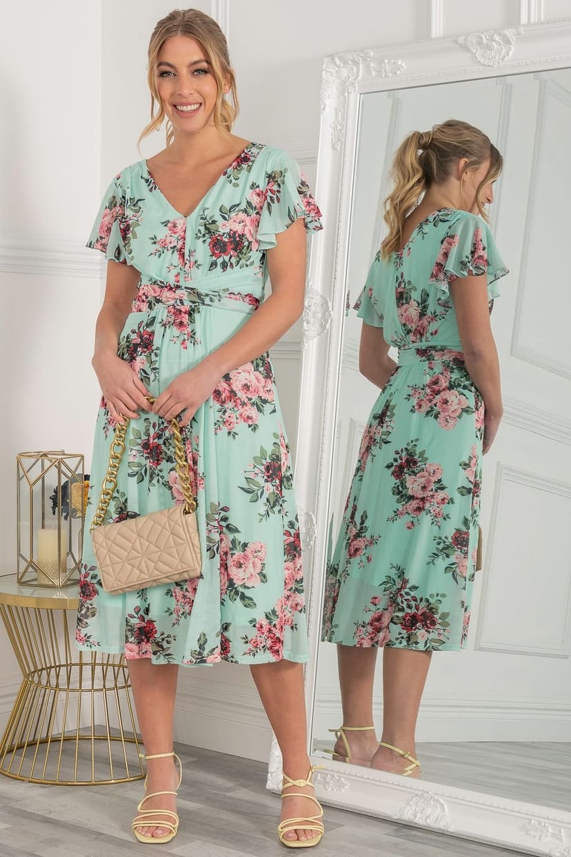 The Jolie Moi Green Floral Mesh Midi Dress is ideal for casual, daytime, evening.