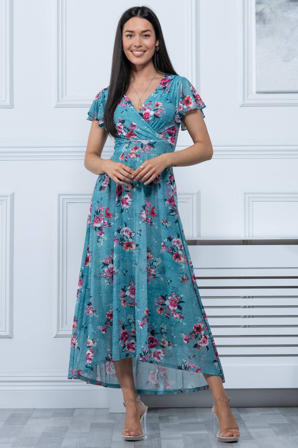 The Jolie Moi Green Floral Dip Hem Maxi Dress is ideal for evening, date-night, party.