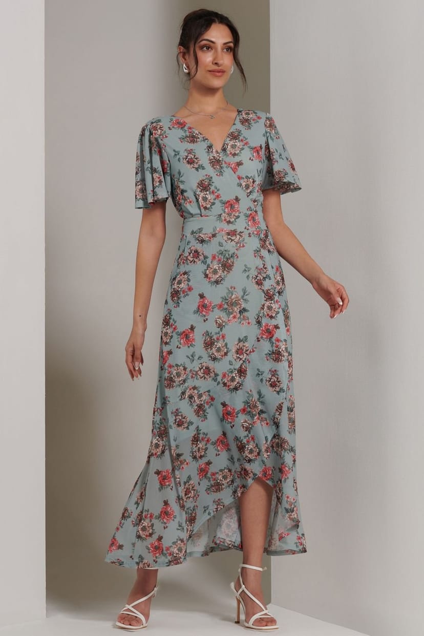 The Jolie Moi Green Floral Print Mesh Midi Dress is available in sizes 10, 14, 18.