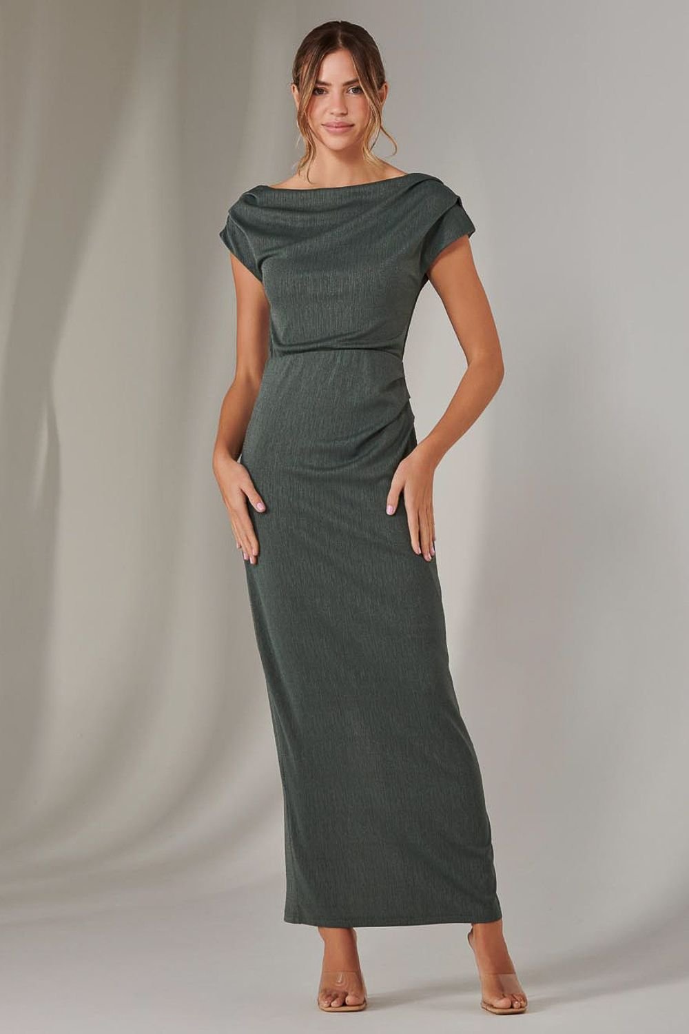 The Jolie Moi Khaki Asymmetrical Bodycon Midi Dress is ideal for evening, date-night, party.