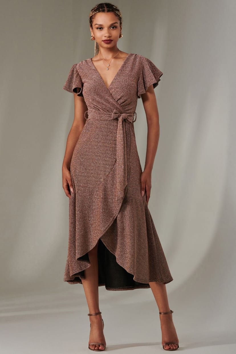 The Jolie Moi Metallic Gold Maxi Dress with Angel Sleeves is ideal for evening, party, date-night.