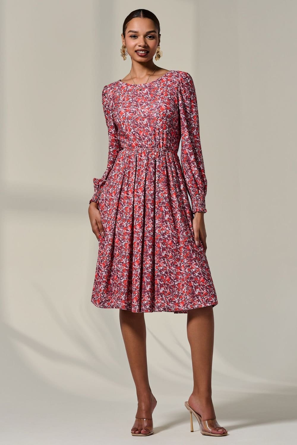 Sophisticated and elegant, the Long Sleeve Jersey Midi Dress from Jolie Moi is adorned in the most perfect orange floral print, which dances across a soft and stretchy jersey material, making it super comfortable whilst still looking your best. Featuring a pleated skirt and long sleeves, this dress is perfect for any occasion.