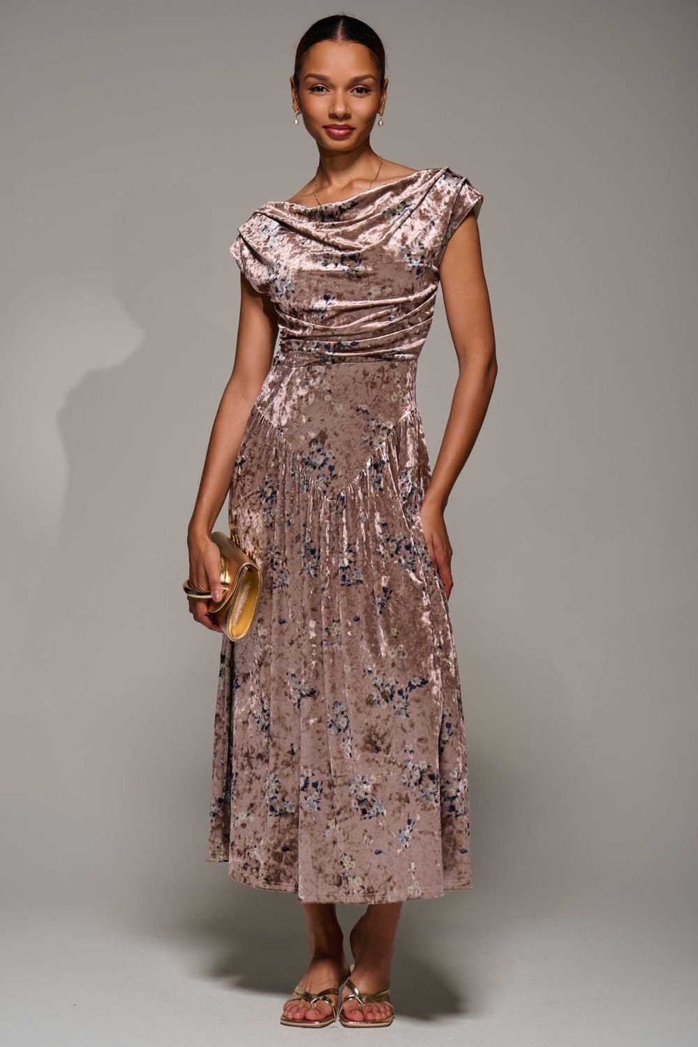 The Jolie Moi Natural Velvet Cowl Neckline Midaxi Dress is ideal for evening, party, date-night.