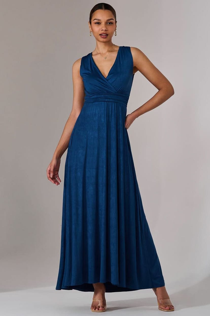 The Jolie Moi Navy Jersey Wrap Bodice Maxi Dress is ideal for evening, casual, date-night.