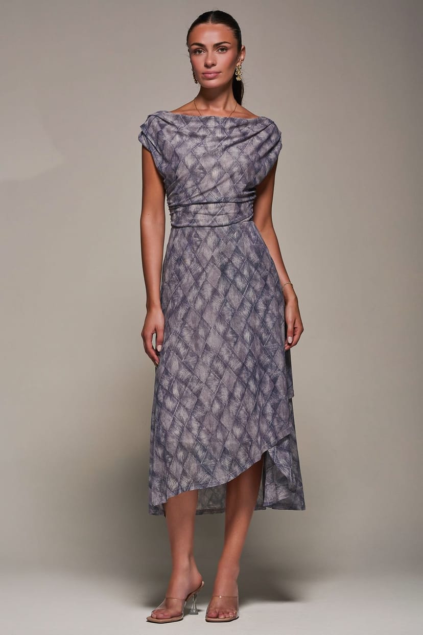Chic and feminine, the Lace Asymmetrical Draped Midaxi Dress by Jolie Moi features a floaty silhouette and a unique pleated neckline. The asymmetric wrap hem adds an element of versatility, allowing it to be worn off the shoulder or as a cowl neck style. Perfect for evening events or date nights.
