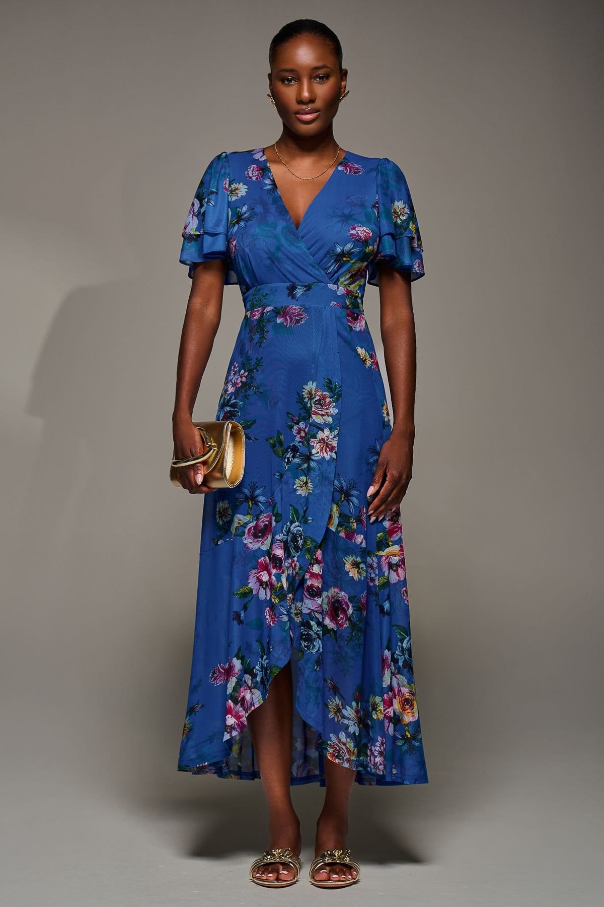 The Jolie Moi Royal Floral Wrap Maxi Dress is ideal for evening, date-night, party.