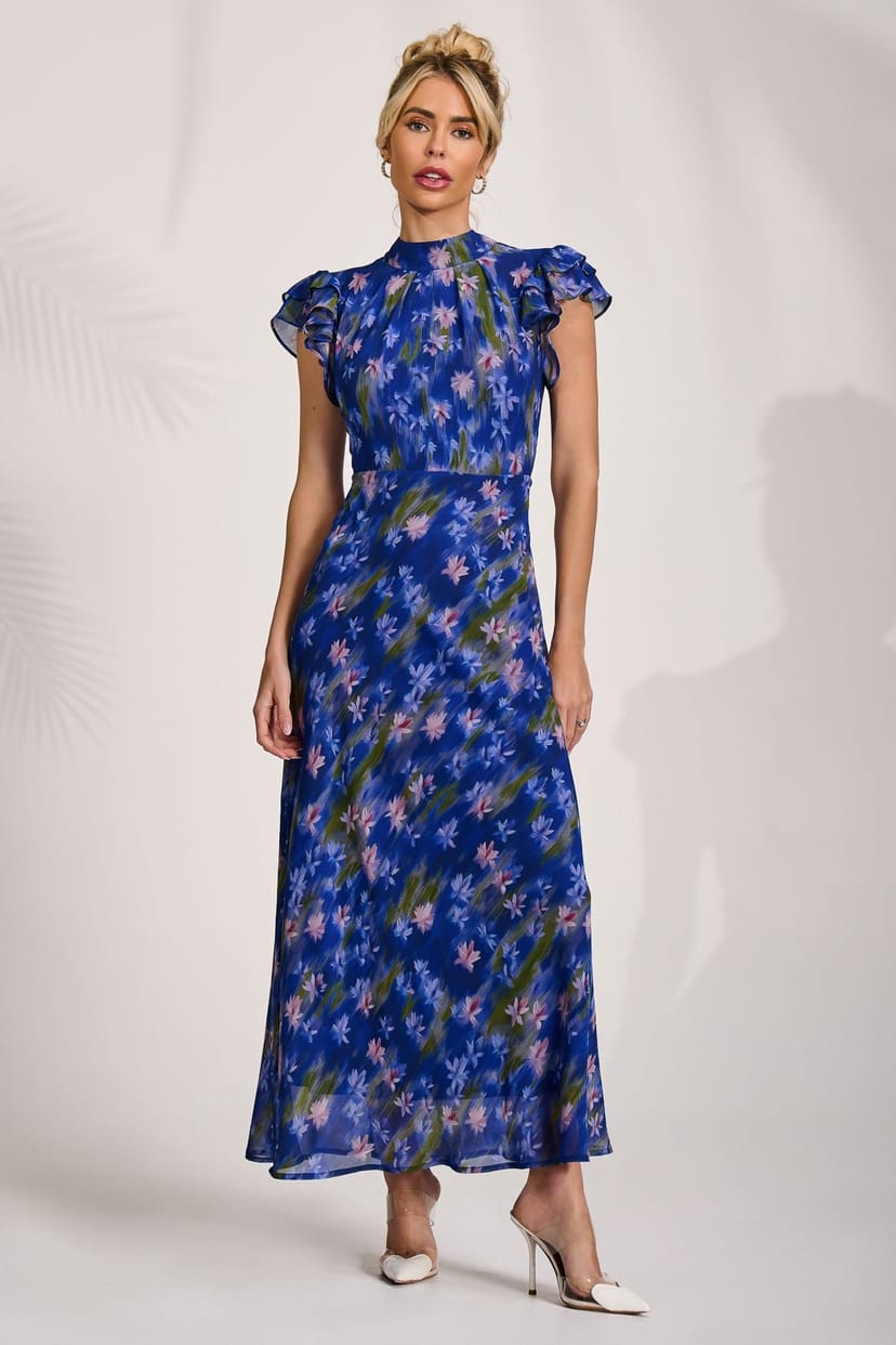 The Jolie Moi Royal Floral Chiffon Maxi Dress is ideal for evening, date-night, party.