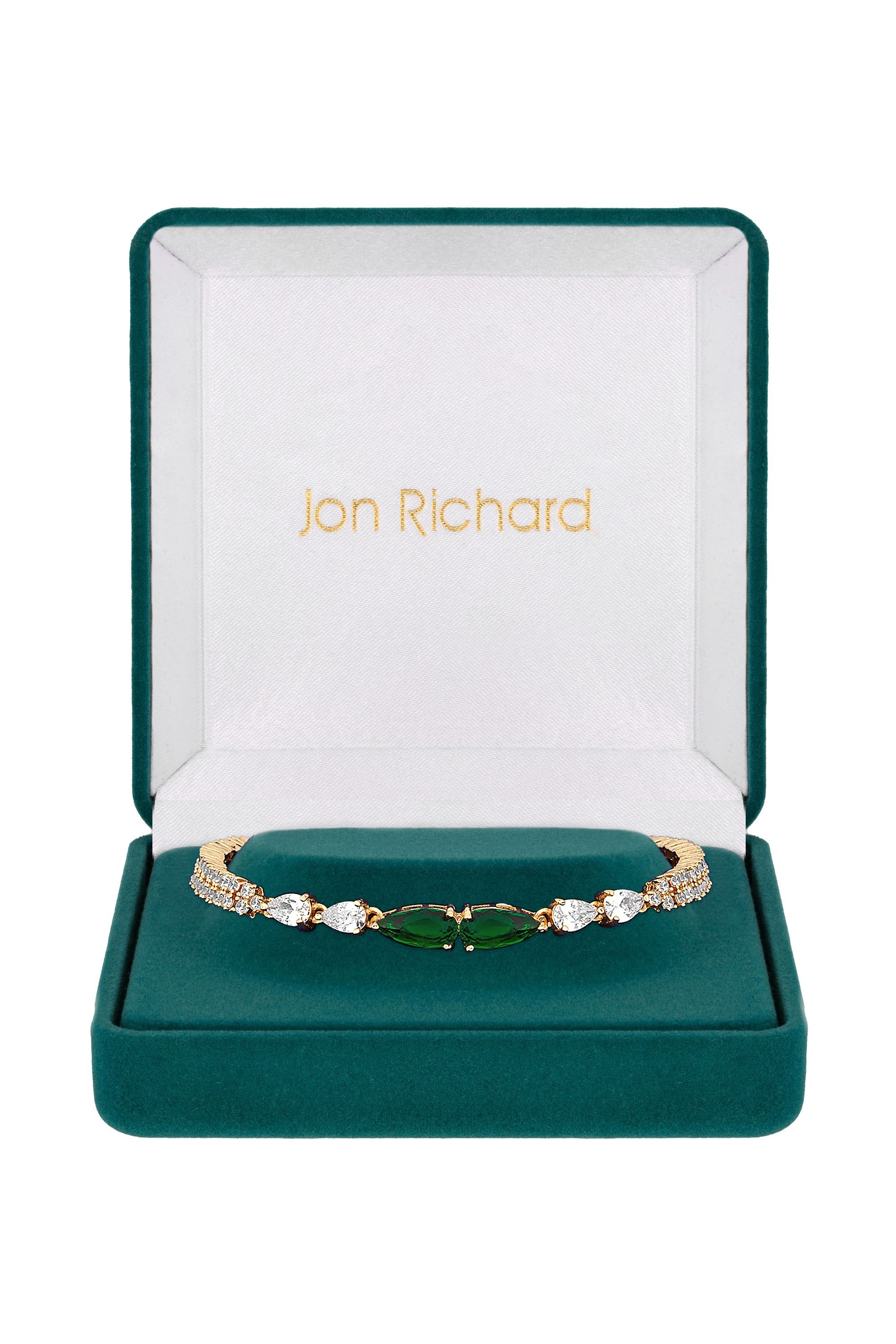 A beautifully boxed bracelet from Jon Richard. This gold-plated bracelet features emerald green cubic zirconia and white cubic zirconia stones. Perfect for adding a touch of elegance to any outfit.