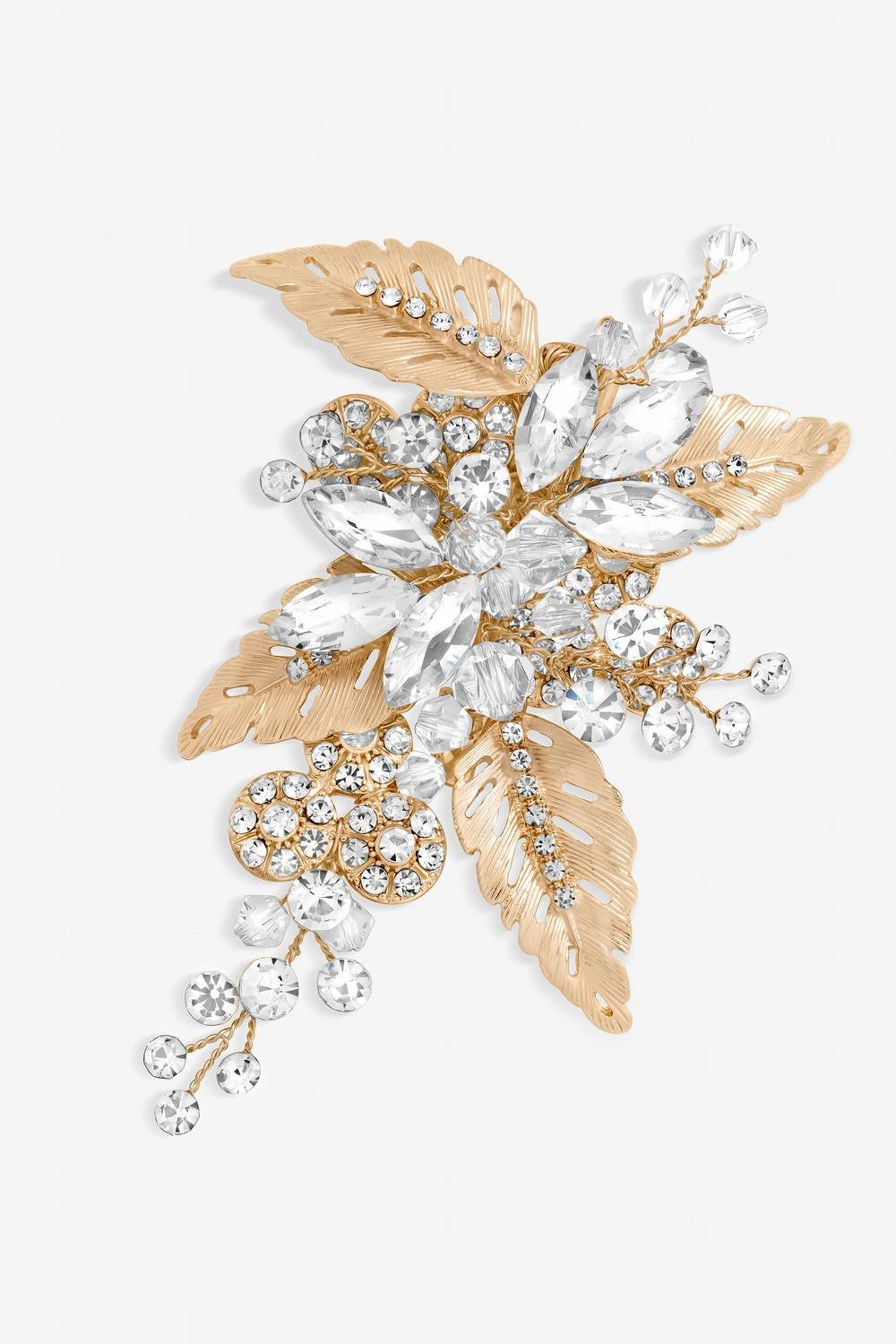 Elegant rose gold floral hair clip from the Jon Richard bridal range. Perfect for achieving the boho look. Features a crystal-encrusted design with a secure clip closure.