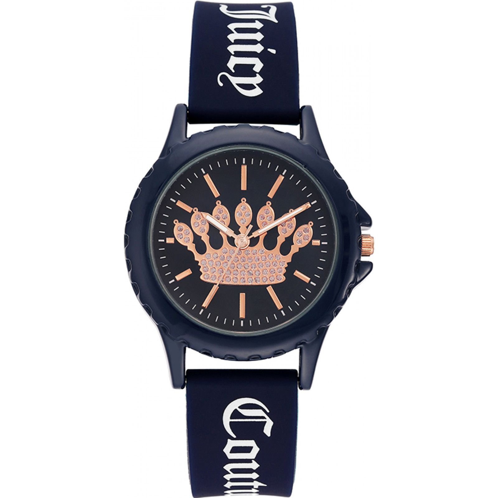 Elegant blue quartz watch by Juicy Couture, featuring a bold crown design and a stylish navy strap. Ideal for adding a touch of glamour to any outfit.