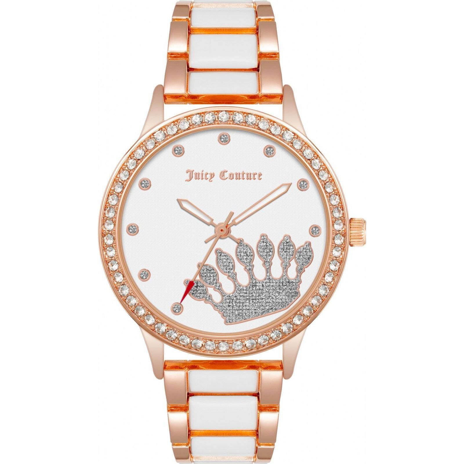 Elegant multicolor watch by Juicy Couture with a rose gold-tone metal bracelet and a white dial adorned with crystals. A perfect accessory for any occasion.