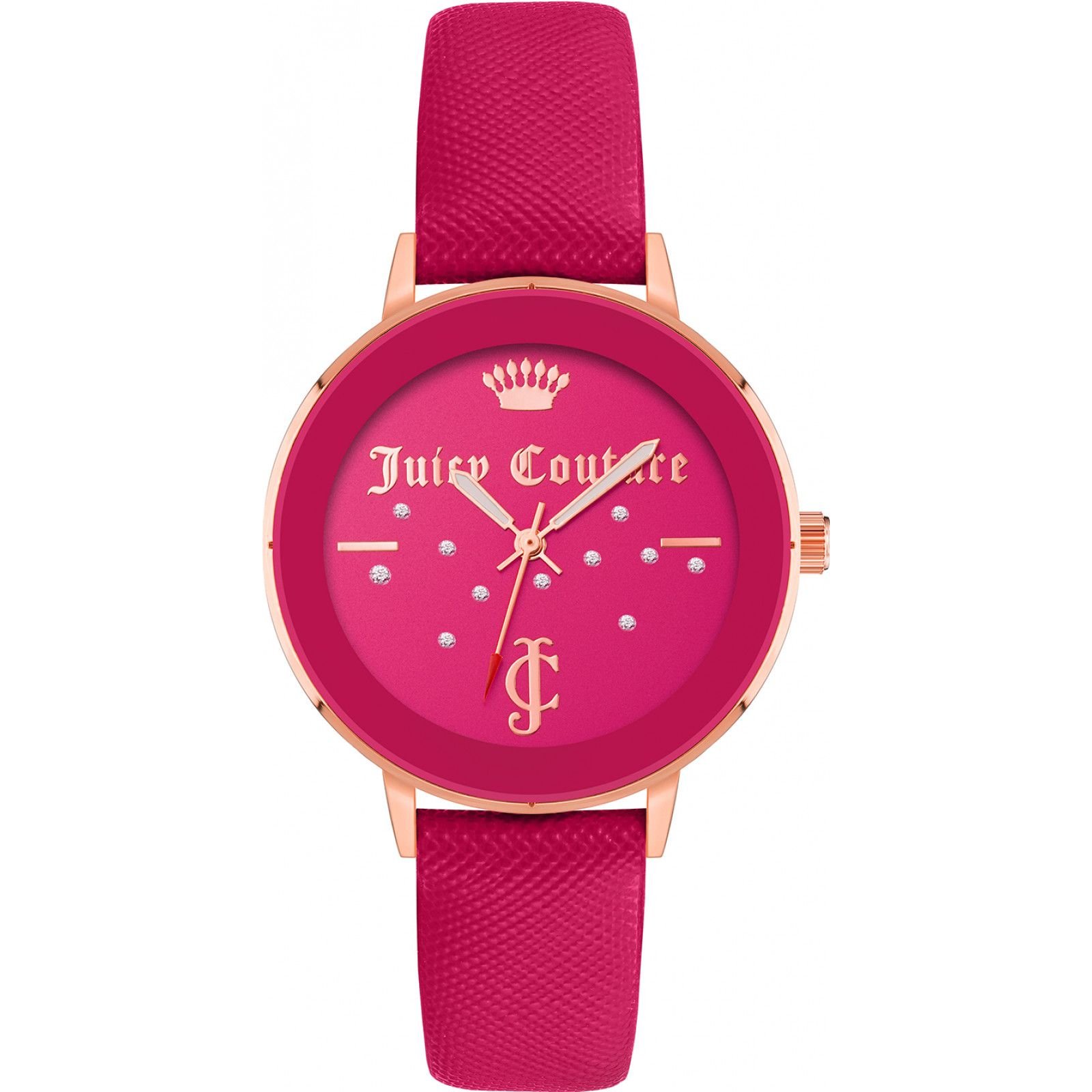 The Juicy Couture Pink Quartz Watch for Women is made from leather, metal.