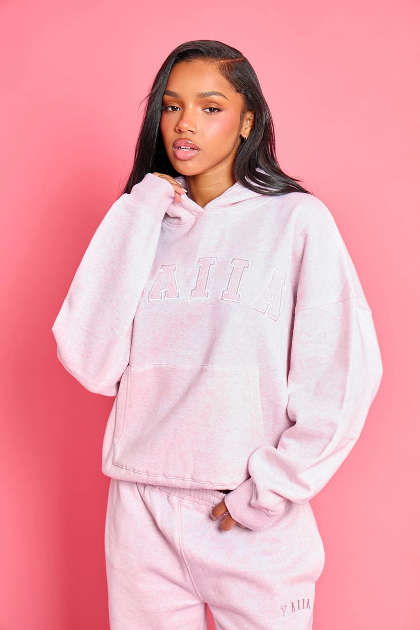 The Kaiia Baby Pink Marl Oversized Hoodie is ideal for casual, everyday.