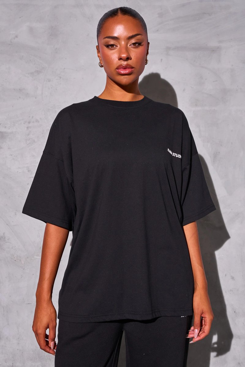 The Kaiia Studio Logo Oversized Tee in Black is ideal for casual.