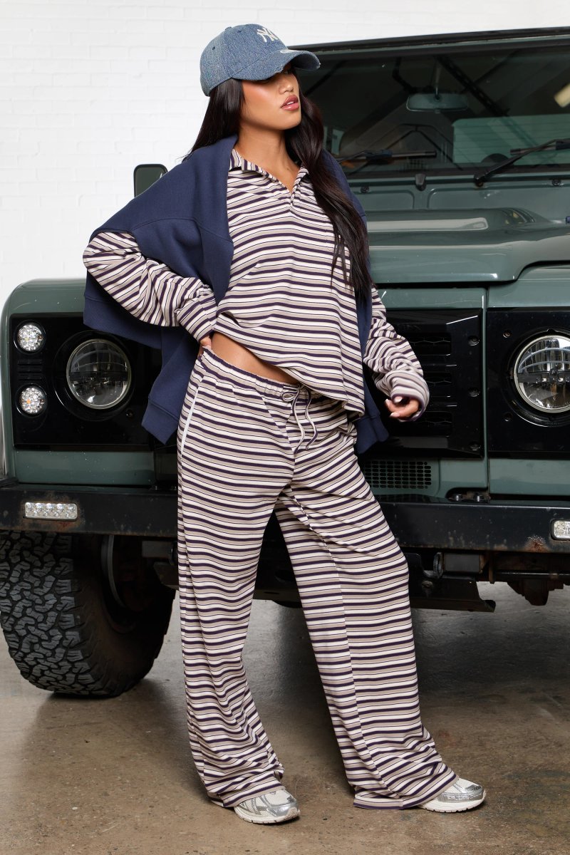 The Kaiia Striped Fleece Wide Leg Trousers is ideal for casual, weekend, lounge.
