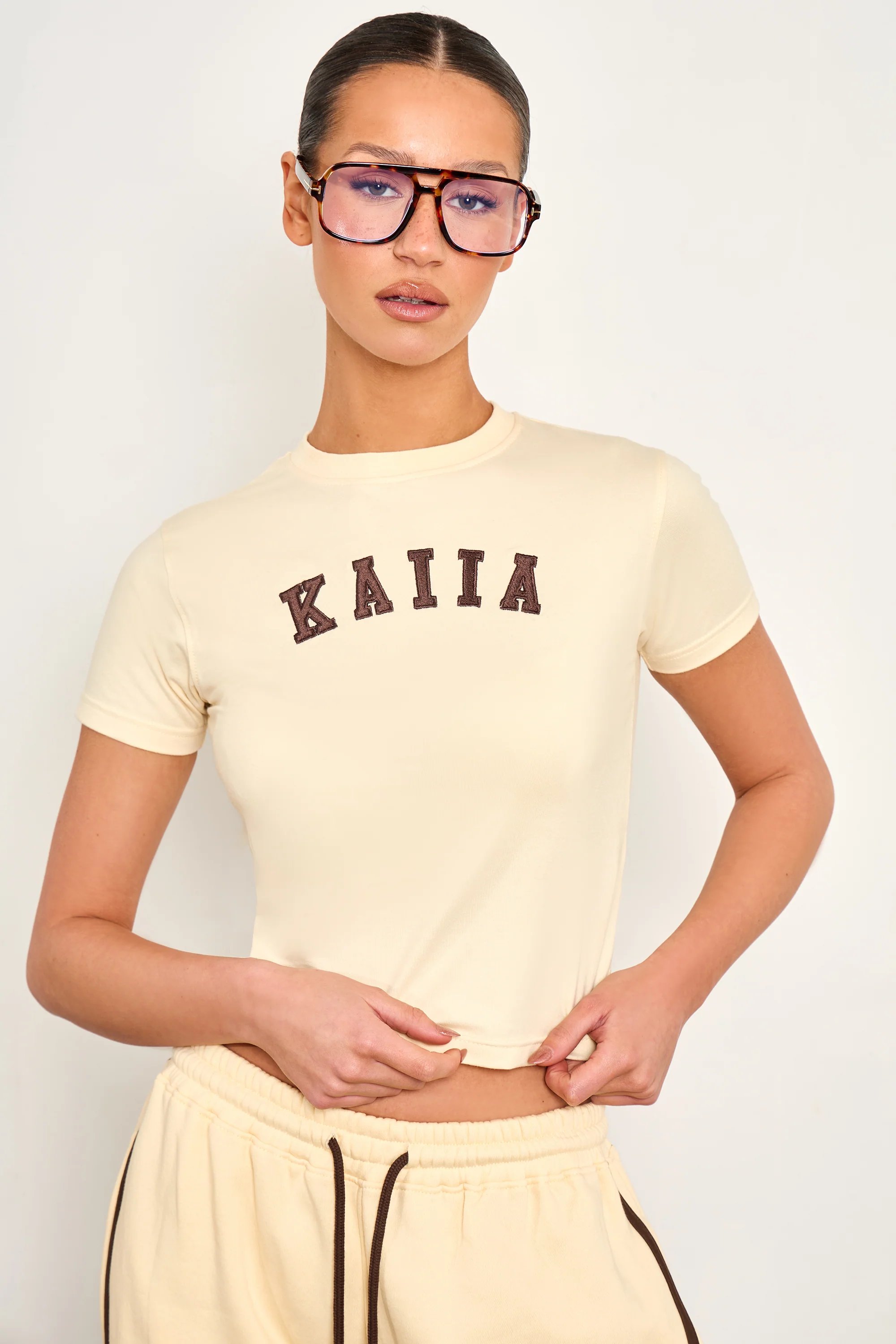 Elevate your casual wardrobe with this striking baby tee featuring Kaiia's signature slogan in a bold two-tone design. The butter yellow and rich brown colour combination creates an eye-catching contrast that works effortlessly with any outfit, from denim to tailored trousers. Crafted for comfort and style, this fitted tee is the perfect statement piece for those who want to express their individuality.
