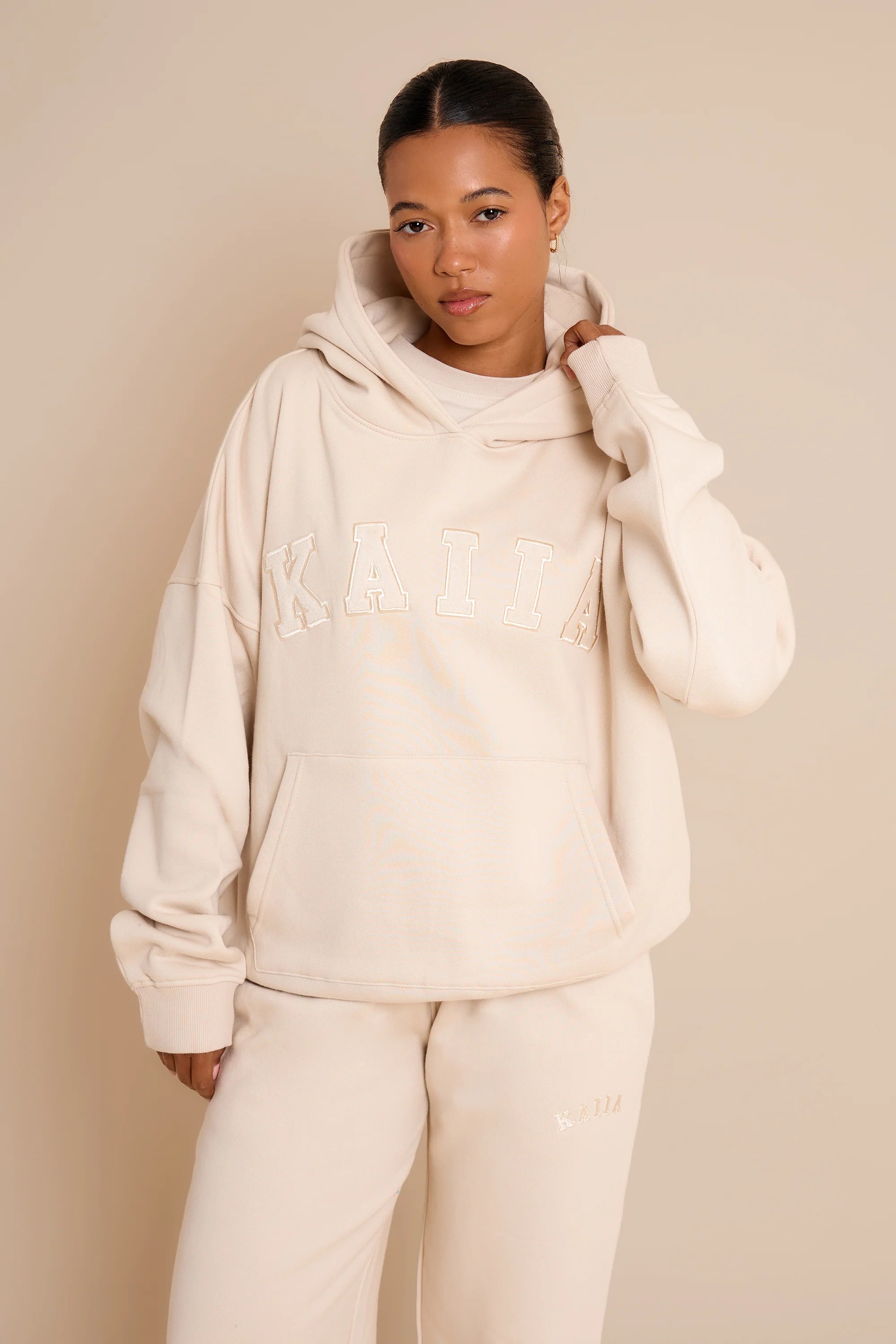 Embrace effortless comfort with the Kaiia Slogan Oversized Hoodie in chalk. Crafted for a relaxed fit, this wardrobe essential features our signature slogan and delivers the perfect blend of style and cosiness. Ideal for layering or wearing solo, it's your go-to piece for casual days and laid-back vibes.