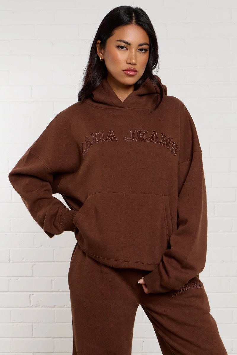 The Kaiia Chestnut Kaiia Jeans Applique Oversized Hoodie is available in sizes 10, 12, 14, 16, 4.