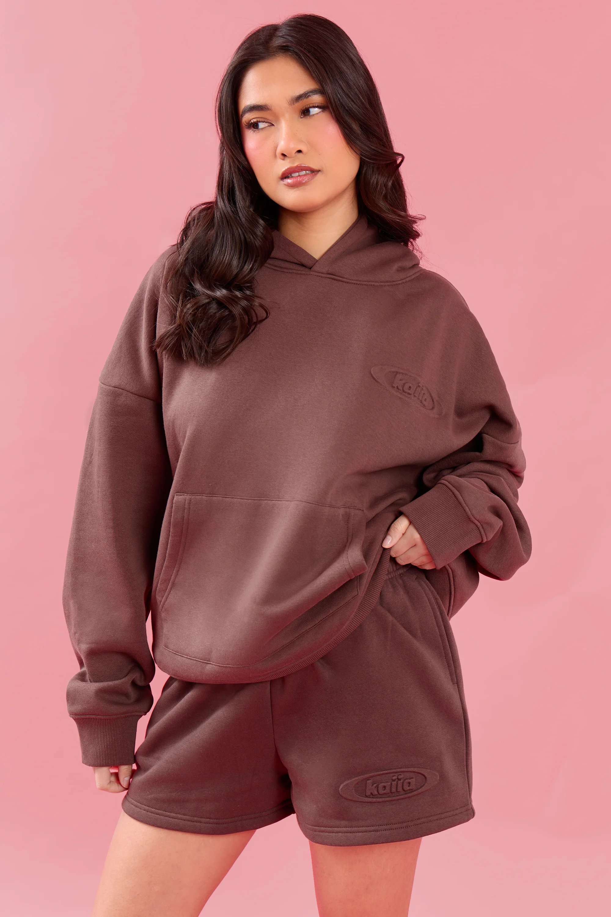 Make a statement with the Kaiia Oval Embossed Mini Sweat Shorts in cocoa brown. These playful shorts combine a flattering mini cut with premium sweat fabric that feels as luxurious as it looks. The signature embossed oval detail adds a touch of refined personality to this casual essential.