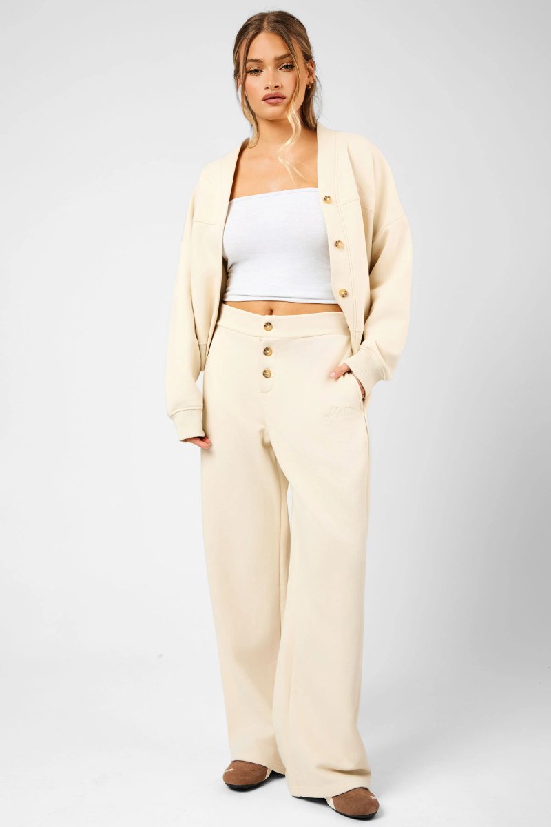 The Kaiia Cream Wide Leg Joggers with Button Detail is ideal for casual.