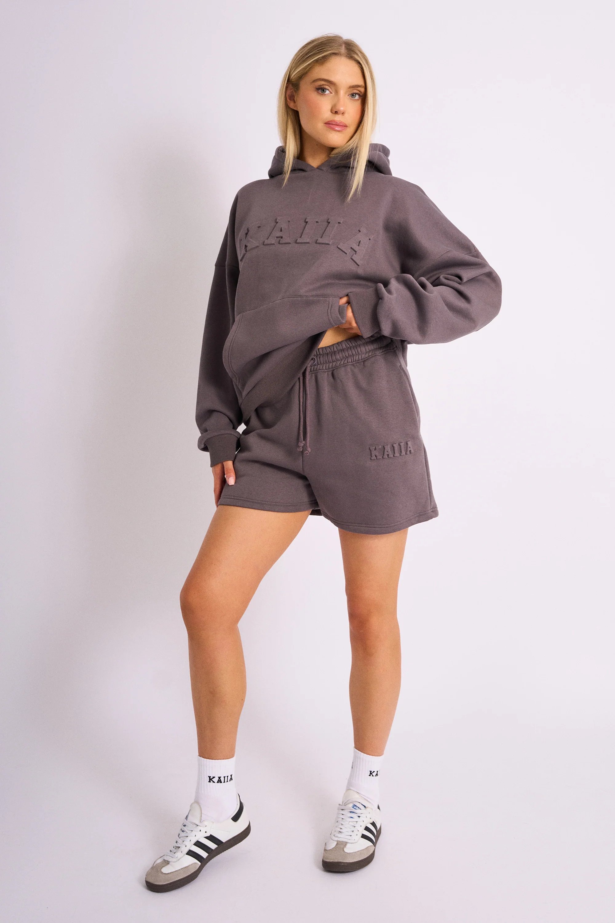 The Kaiia Embossed Logo Sweat Shorts in Dark Grey is ideal for casual.