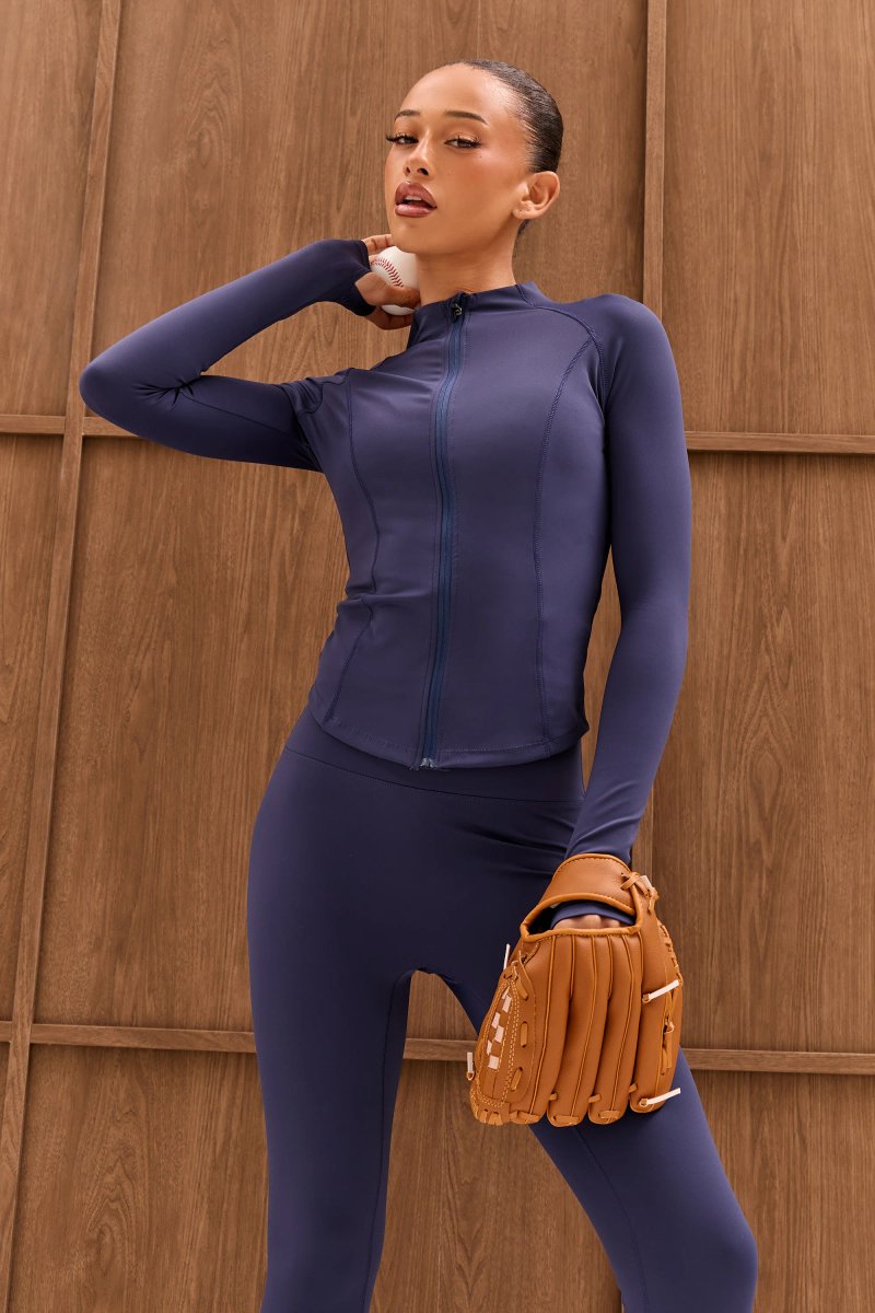 The Kaiia Sculpt Long Sleeve Zip Through Fitted Jacket Dark Navy is ideal for casual, gym, weekend.