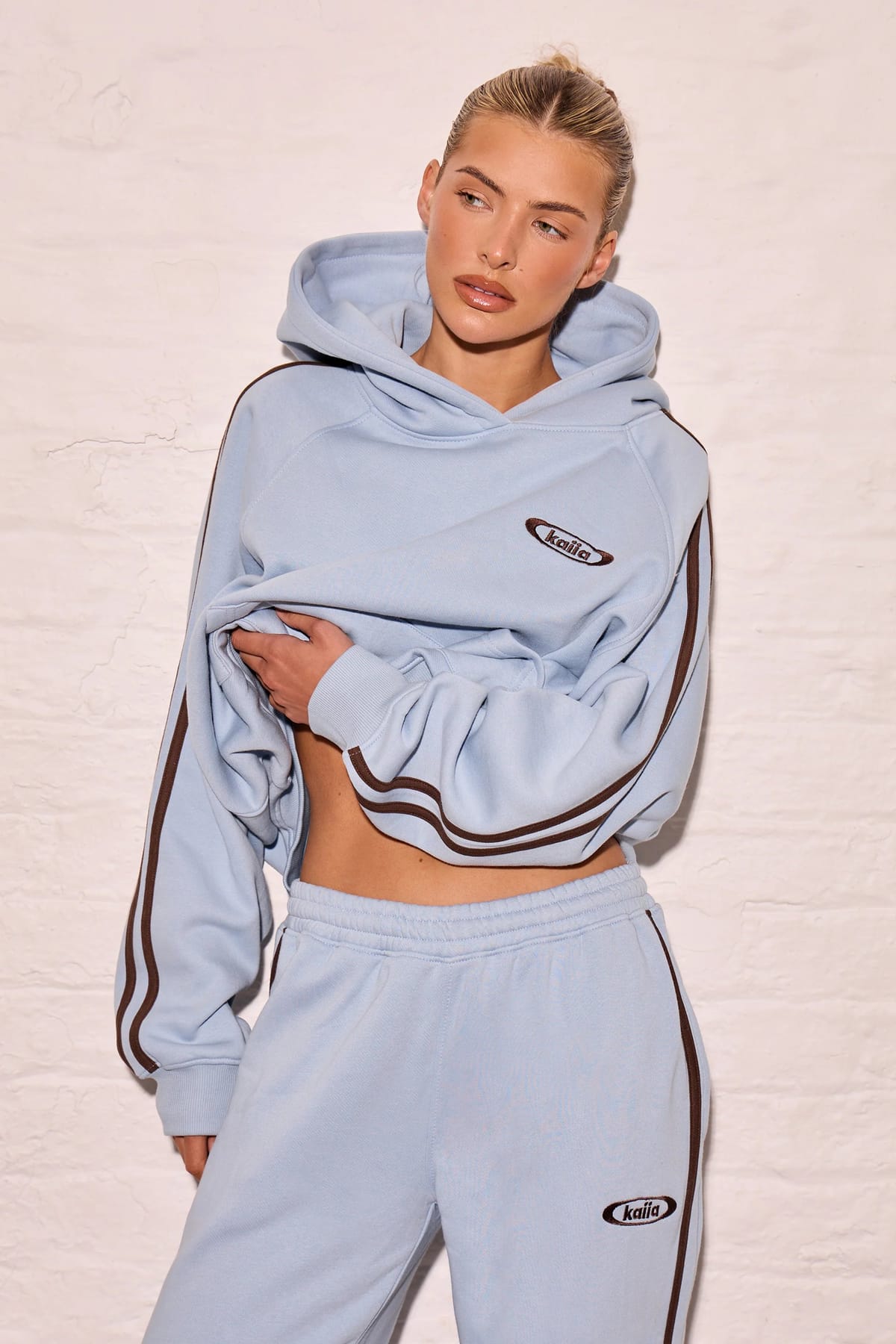 The Kaiia Dusty Blue & Chestnut Brown Side Stripe Oversized Hoodie is ideal for casual, everyday.