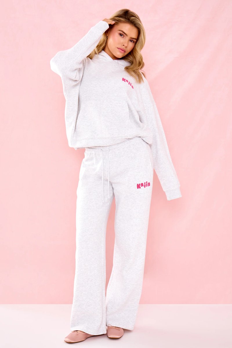 The Kaiia Bubble Graphic Light Grey Marl & Pink Joggers is available in sizes 10, 14, 16, 18, 6, 8.