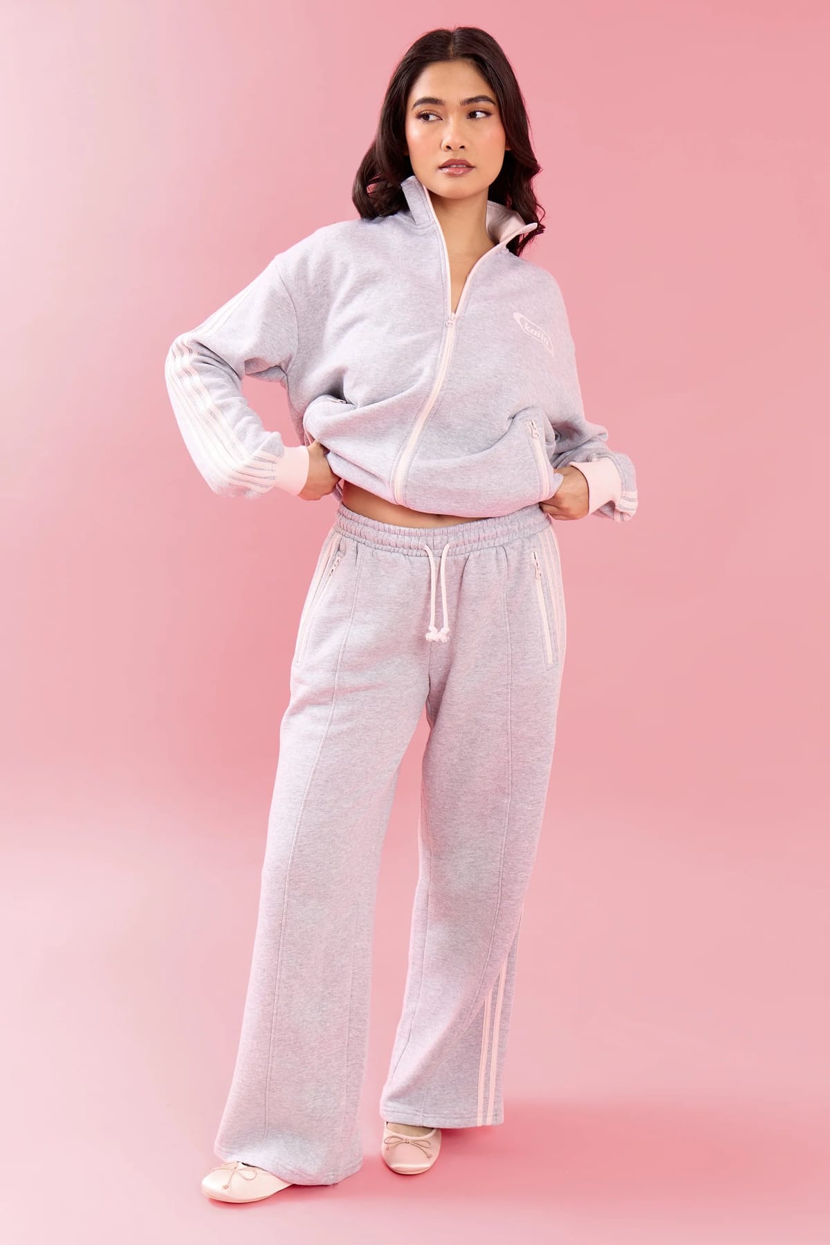 Discover comfort without compromise in these wide-leg joggers, designed with eye-catching side stripes in light grey marl and pink meringue. The relaxed fit flatters every frame while the elevated colour-blocking elevates your casual aesthetic. Crafted for movement and style, these joggers transition seamlessly from loungewear to street style.